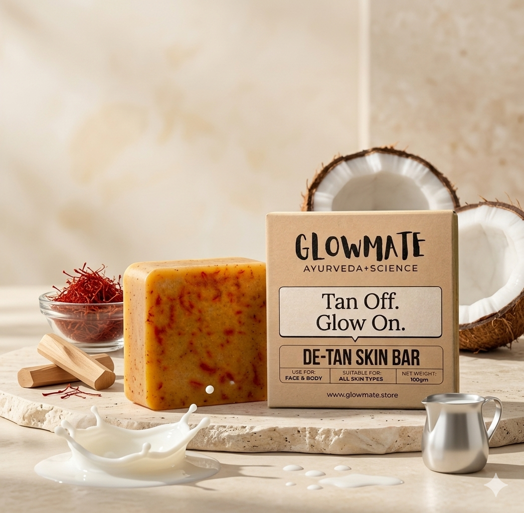 GLOWMATE is crafted to bring out your natural glow with the power of saffron, sandalwood, goat milk, and coconut oil. Designed for daily use, it gently cleanses, reduces tan, and leaves your skin soft, fresh, and radiant without harsh chemicals.